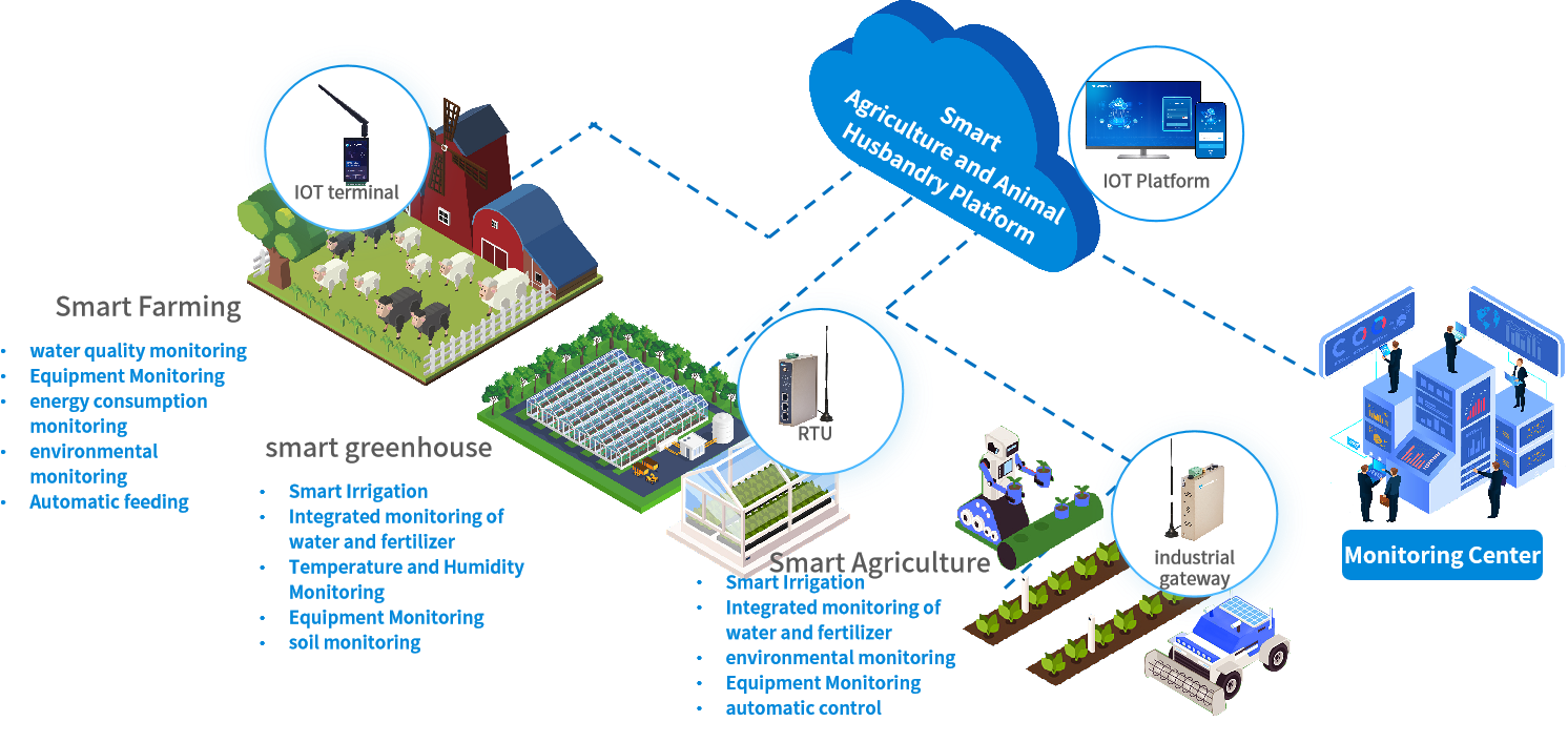 WideIOT utilizes technologies such as the Internet of Things (IoT), sensors, and big data, focusing on all links of agricultural and animal husbandry production (including planting and breeding) to provide smart agriculture solutions like environmental monitoring, precision irrigation, and intelligent breeding. By real-time collecting agricultural and animal husbandry production data, environmental and meteorological data, etc., it helps farmers improve production efficiency, reduce operation and maintenance costs, and enhance the quality and output value of agricultural products.