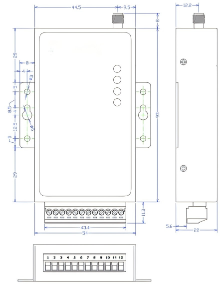 | Antenna connector | LORA Antenna: SMA x 1, 4G Antenna: SMA x 1 | |