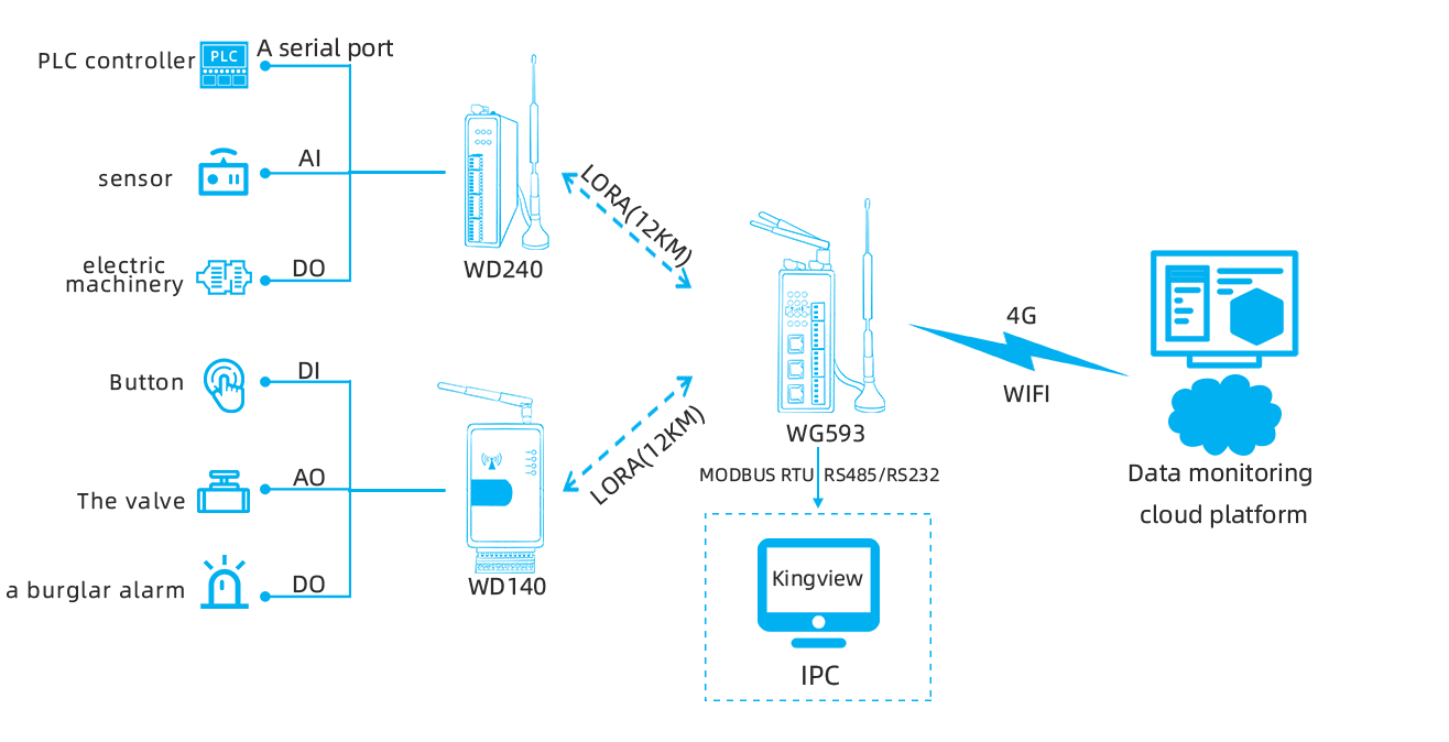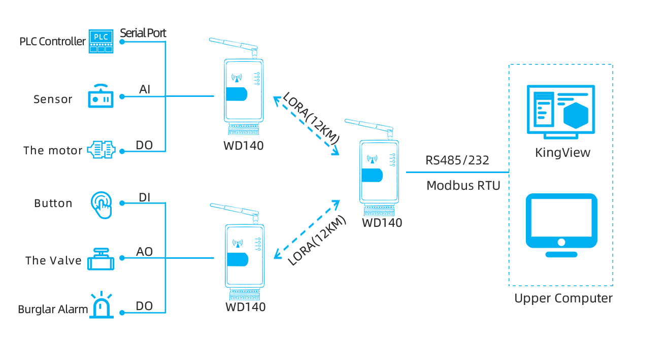 | Example | WD140-LM0211-485 (domestic frequency band: 410~493MHz LORA, 485 serial port) WD140-GM0211-485 (domestic frequency band: 4G CAT1 , 485 serial port) WD190 -LM0211-485 (domestic frequency band: 850~930MHz, 22dbm, 485 serial port) |