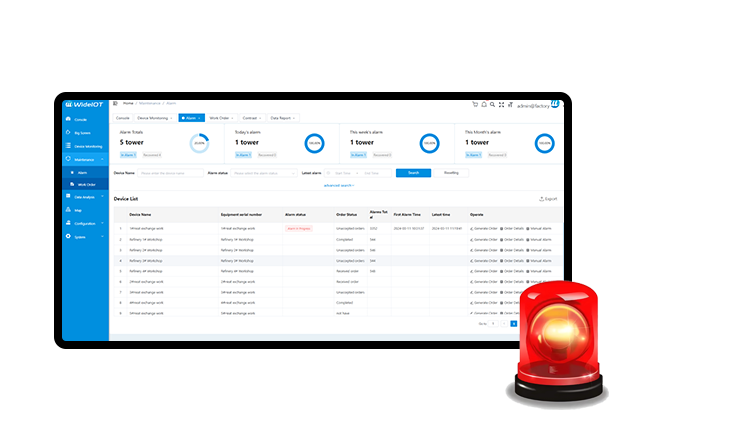 Through the alarm function and early warning mechanism, the abnormal situation of the equipment can be found in time, and the alarm information will be notified to the corresponding management personnel through mobile phones and emails in time, and inspection and maintenance will be carried out in time.