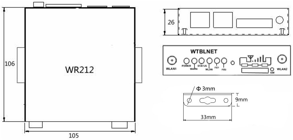 | Example | WR212-LL07-232 (two network ports, 4G CAT4 full Netcom, 232 serial ports) WR212-LQ2S-485 (two network ports, 4G CAT1 full Netcom, 485 serial ports) WR212-LL07-WLAN-485 (two network ports, 4G CAT4 Full Netcom, 2.4G WIFI, 485 serial port) |