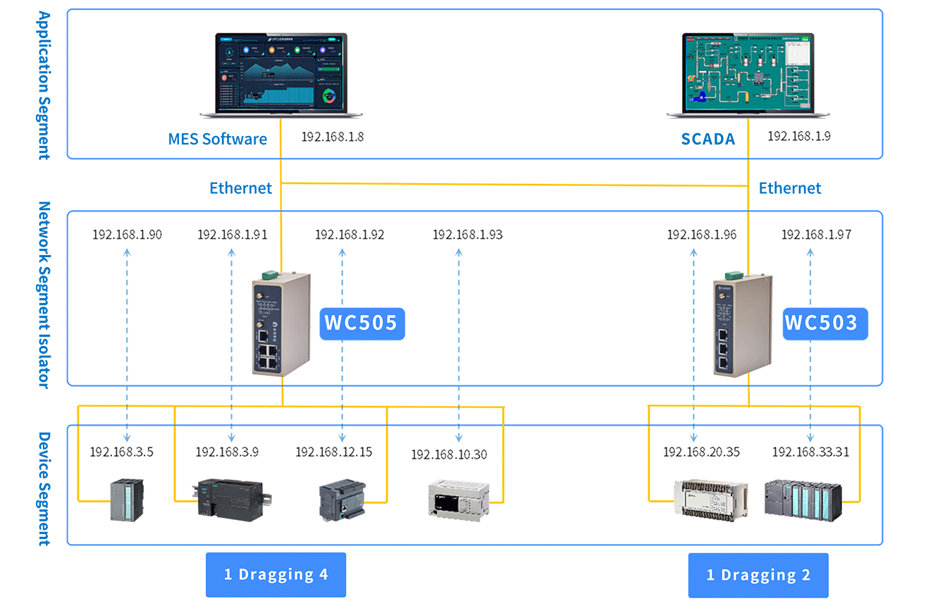 In the era of industrial internet, many factories operate various industrial control systems encompassing diverse machinery, equipment, sensors, and networks. Vulnerabilities such as IP conflicts and hacker attacks can easily arise, potentially leading to risks including production accidents, equipment damage, and leaks of commercial secrets. An effective device network isolation solution is required to safeguard factory network security and ensure stable production.