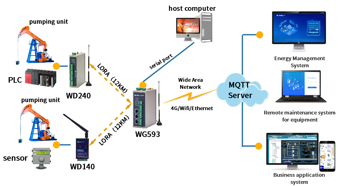 In order to realize real-time dynamic monitoring of oilfields, provide accurate data basis for production operation and management decisions, and comprehensively improve the level of safety management, many customers urgently need to build oilfield IoT systems.WideIOT focuses on the overall solution of the Internet of Things, and has corresponding independent research and development products from on-site data collection to the platform, which can meet the various needs of customers for building oilfield systems.