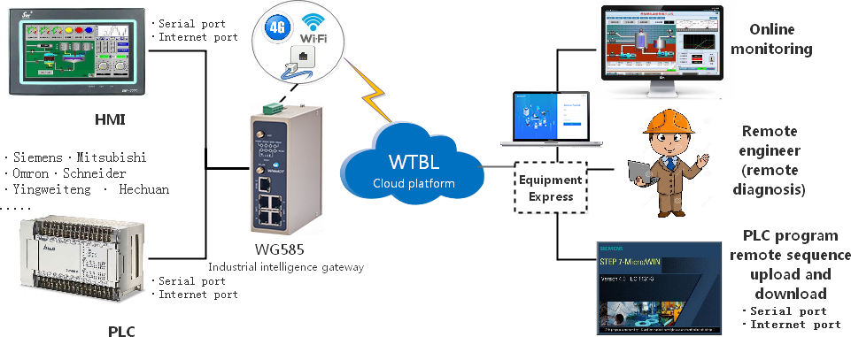 1. Build a safe pipeline leading to the field equipment to realize the maintenance work such as remote monitoring, debugging and program uploading and downloading of PLC.